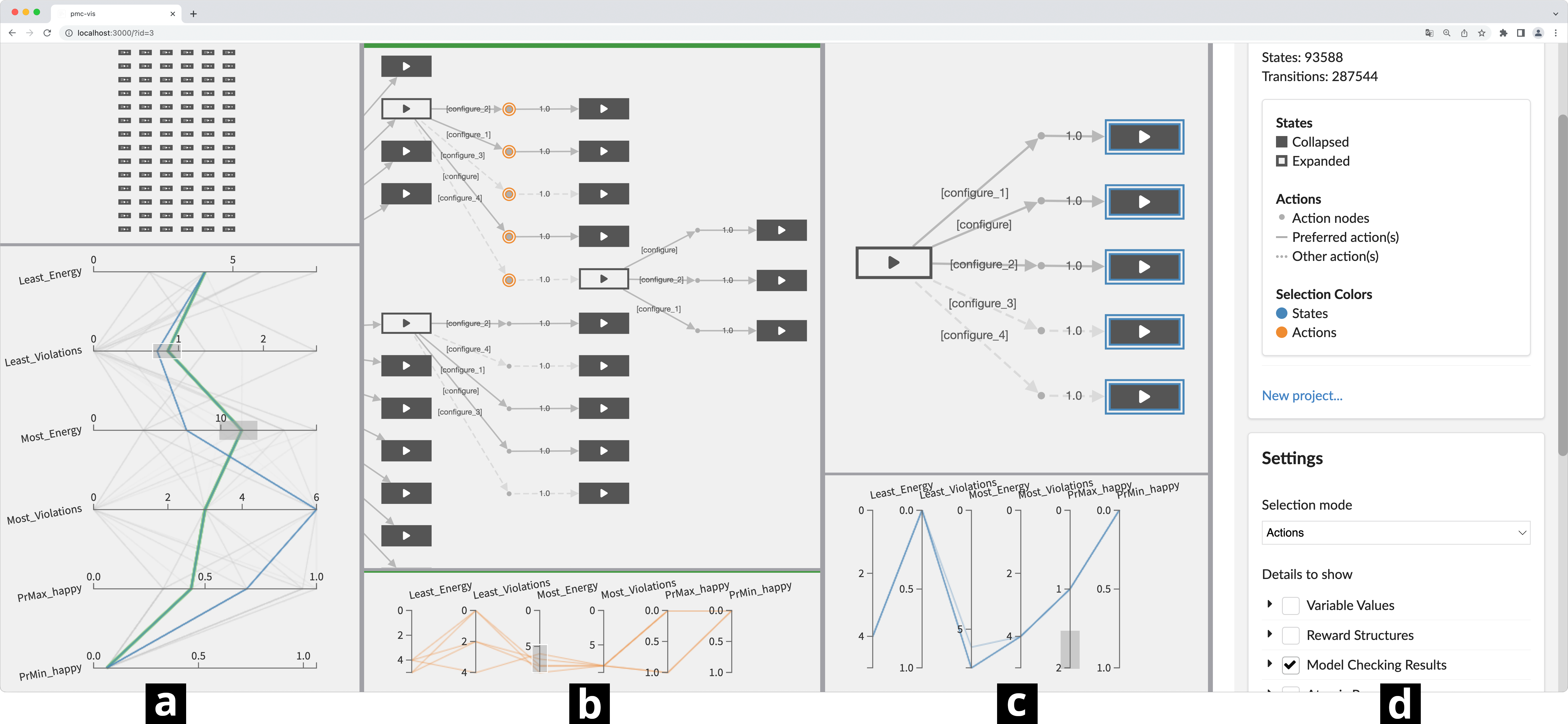 pmc-vis as a web-based visualization tool for probabilistic models that supports the exploration of large multivariate decision graphs, formal verification, and debugging.
